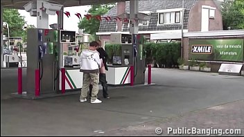 Два парня пришли в гости на заправку к местной давалке Алёне, которая готова трахаться в любом месте и в любое время. Пока не было клиентов шкура предложила самцам выйти на улицу и прямо на заправке трахнуть кассиршу. Мужики обрадовались такому предложению и быстренько загнули пухлую шаболду и стали жарить, оглядываясь по сторонам, да бы не спалиться.