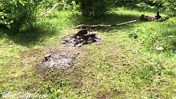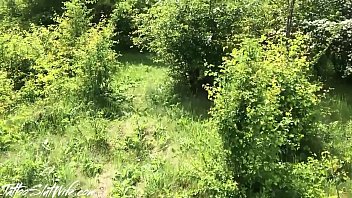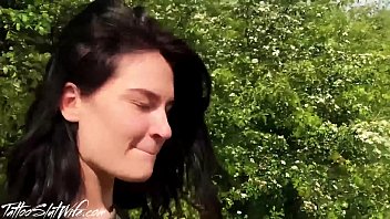 Молодая баба ехала с деревни к мужу и её попутчиком был местный хлопец, действующий любовник. Как только парочка выехала из деревни, то татуированная потаскушка предложила хахалю записать порно на природе. Чувак с удовольствием достал телефон и начал снимать аппетитную грудь милашки, а после в кустиках угостил голодную пилотку мощным членом.