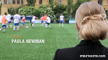 Сексуальная дама с шикарными формами приехала в футбольный клуб, чтобы проведать любимого сына. Зайдя в раздевалку самка заметила аппетитного паренька, а одноклубник принимал душ. Сучка сразу представила жаркую МЖМ еблю и отдалась молодым хлопцам. Футболисты без стеснения трахнули мамку друга и накормили спермой, залив пышную грудь свежим йогуртом.